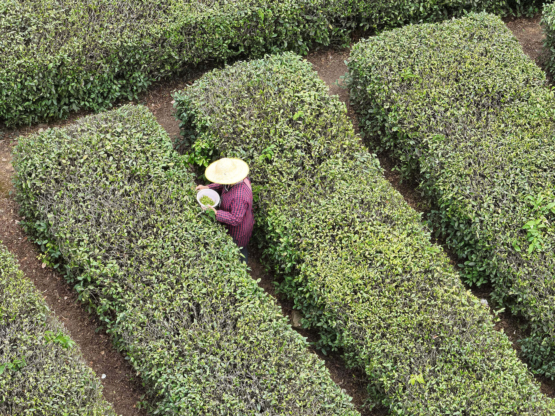 沿着山路拾级而上,我们可以看到一片广袤的茶园,茶树芳新,茶香弥漫,小径上铺满一路的五彩花朵,偶尔还能看到采茶人忙碌的身影。在山的最顶端有一座凉亭,名为“吴亭”,在那里可以纵览整个太湖美景,与小梅山遥遥相望。大家还可以在吴亭边的“越台”里赏景品茗,静享悠闲惬意的恬淡时光。